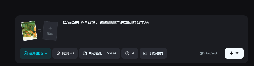 Step 1: Prepare Story Ideas Open the DeepSeek website: https://chat.deepseek.com/ Enter prompt words to ask the AI to generate story scene descriptions. For example: "I am an AI short video blogger, I want to create a video of a cat going to the market to buy vegetables and cook. Help me generate 5 scene descriptions, just one sentence description of the scene."